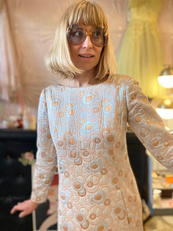 1960s Mod Silk Space Age Print Quilted Metallic Maxi Dress Etsy Uk